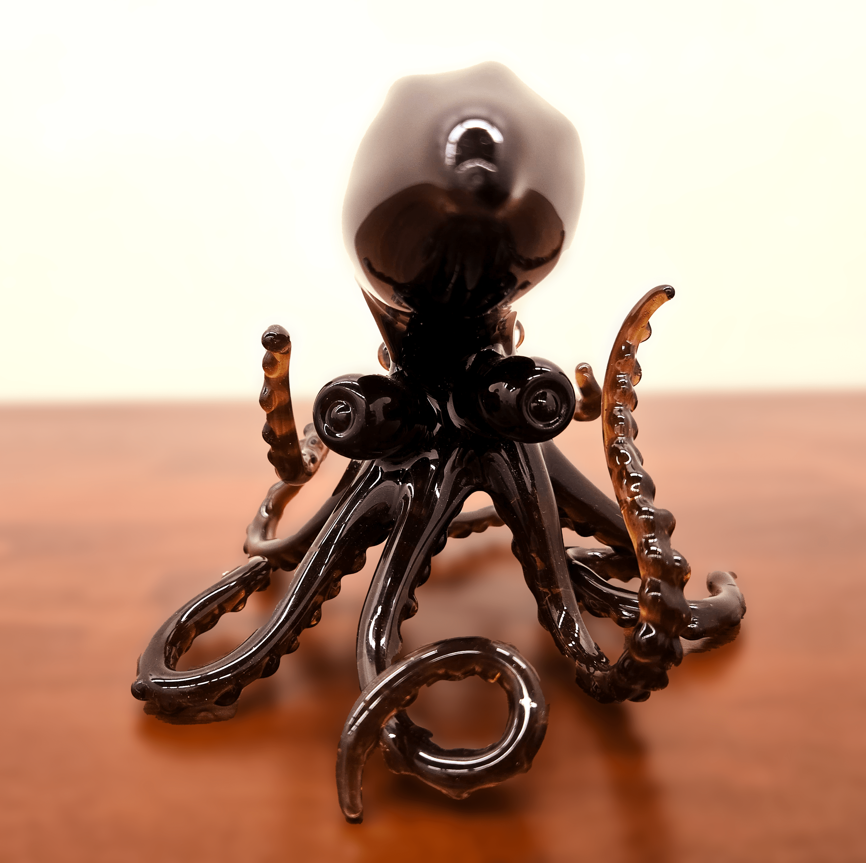 Octopus is a mesmerizing sculpture capturing the grace of the giant Pacific octopus. Handcrafted from borosilicate glass in a rich reddish-brown hue, this piece showcases the artist’s exceptional skill in creating lifelike marine forms. The fluidity and intricate detail of the octopus’ tentacles, each curled as if in mid-motion, evoke the creature’s agile movements beneath the sea. The natural transparency and shine of the glass enhance its realistic texture, drawing viewers into its captivating presence.